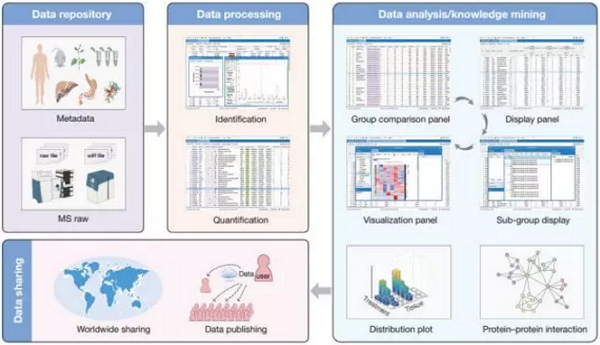 Firmiana支持包括来自Thermo,AB Sciex,Agilent等不同厂商的质谱原始数据格式,整合了多种现有的蛋白质组学分析工具(ProteoWizard,Mascot,X!Tandem,InterProphet等等),开发了多种定量和质量控制算法,并提供了多种生物信息学分析(聚类分析,差异蛋白分析,通路富集分析等)以及数据挖掘功能。为了验证Firmiana平台数据处理的能力,研究人员测试了1.5TB(约2000个原始文件)的数据集,进行了全局质量控制并在短内完成处理。Firmiana平台所提供的数十种在线的生物信息学工具有很好的兼容性、持续可开发性和易用性,无生物信息学基础的科研人员也可以无障碍的使用。截止到2017年5月10日,Firmiana已存储并处理了来自十一个物种的3282份实验的数据。