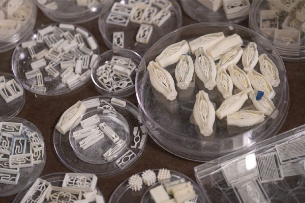 Miller说,这种复杂、详细的结构是通过选择性激光烧结实现的,这是一种将微小的粉末颗粒熔合成立体物体的3d打印工艺。与更常见的挤压3-D打印,熔化的材料线通过喷嘴沉积不同,激光烧结的工作方式是在干燥粉末的填充床上轻轻熔化和熔合小区域。他说,挤压和激光烧结都能一次形成一个的三维形状,但激光方法能产生在挤压时容易坍塌的结构。