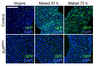 Edgar和Teleman的研究小组发现,蜕皮激素是一种性别特异性的激素,它可以极大地改变器官中干细胞的生长特性,值得注意的是,该器官与生殖没有直接关系。他们发现这些变化会影响整个器官的结构和功能。他们发现,给雄性果蝇注射蜕皮激素,会导致它们原本分裂缓慢的干细胞分裂速度加快,从而导致雄性果蝇肠道的生长。这表明,雄性果蝇和雌性果蝇干细胞分裂的限制差异在于激素的循环水平。
