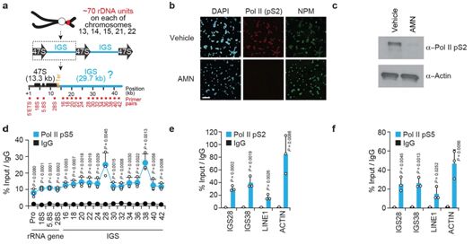 Mekhail和他的同事们发现,在核仁内,Pol II能够让核糖体RNA(rRNA)基因表达---这是制造核糖体的关键步骤。他们发现,Pol II产生的R环(R-loop)---杂合DNA-RNA结构---直接保护rRNA基因,使其免受称为正义基因间非编码RNA(sense intergenic non-coding RNA, sincRNA)的分子干扰物的影响。