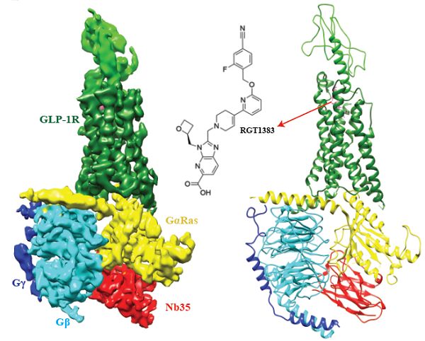 GLP-1R属于B类GPCR,是治疗II型糖尿病和肥胖的靶标。目前,获批用于治疗II型糖尿病的几个多肽类药物,除口服索马鲁肽外,均是注射剂型,且会带来如恶心和呕吐等副作用。口服非多肽类药物一直是研究机构和工业界尝试用于治疗II型糖尿病及减肥的药物,但由于小分子难以模拟受体与多肽的相互作用,限制了GLP-1R小分子药物的发现。